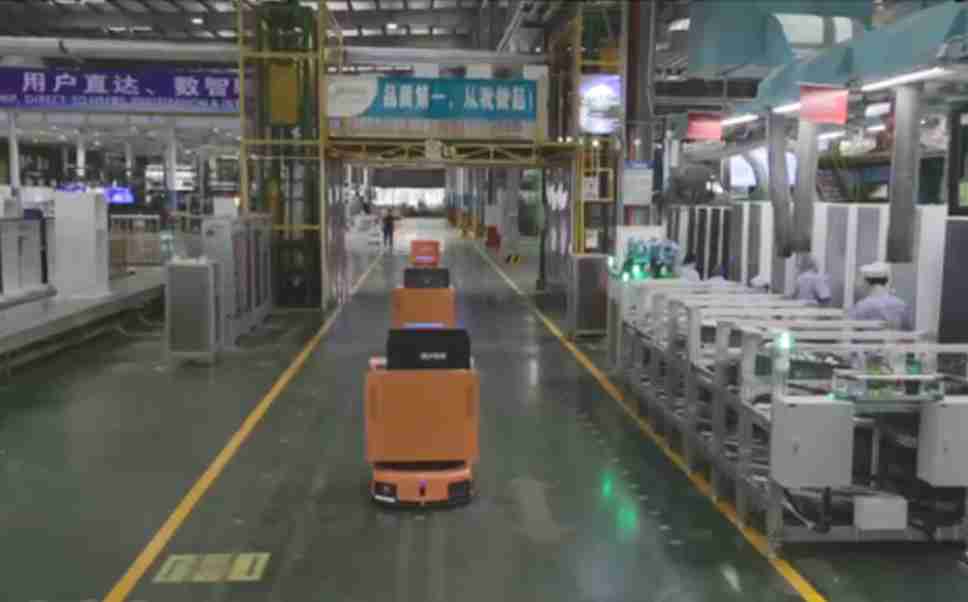 为车载冰箱物流配送打造的智能解决方案,,包含产中物流通过潜伏举升AMR搬运至线边,,,产后成品物流智能仓储,,,,流程包含产中物流智能齐套入库,,,,线边安灯叫料AMR智能配送至线边,,,,成品入库、、、、出库,,,通过无人堆高车机器人,,,,智能仓储管理替代人工作业管理,,,,实现更高存储、、、、更高效率、、、更具柔性化的解决方案。。。